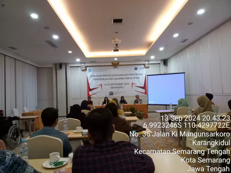 Pelaksanaan Evaluasi Program pkk 2024 di adakan di hotel Harris Centerland Semarang pada tanngal 13-15 September 2024 yang di ikuti dari tim Verifikator Direktorat kursus dan pelatihan.